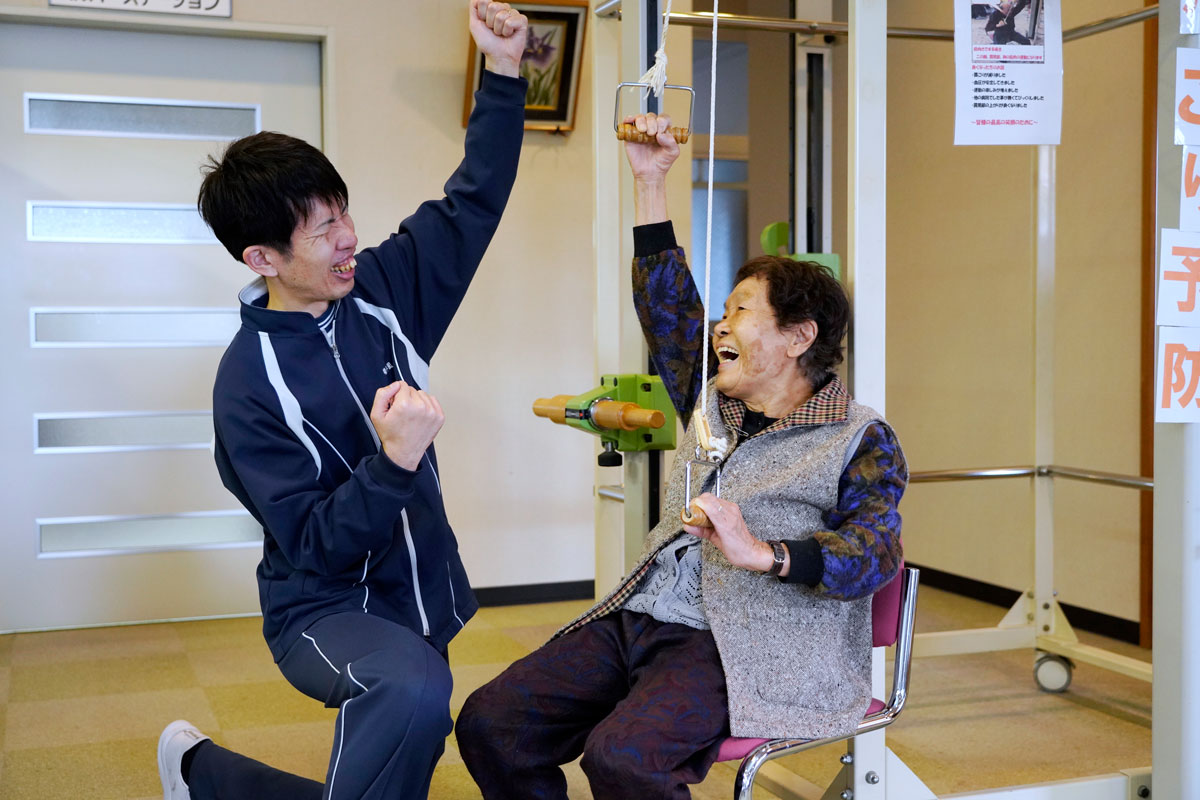 思い切って飛び込んで本当に良かった! 当たり前ですが休日もしっかり確保されていて、入職してから家族との時間がグンと増えました。私のキャリアを尊重して、意見にしっかり耳を傾けてもらえる環境にやる気は高まるばかりです。利用者さんと関わるほどに、こうしたらもっと良くなるかもしれない、といったアイデアが出てきます。例えば、血流をよくするウォーターマッサージベッドの導入でストレッチ効果を上げるとか。リハビリや運動と意識せずに、自然と機能回復へつながるプログラム作りを実現したいですね。