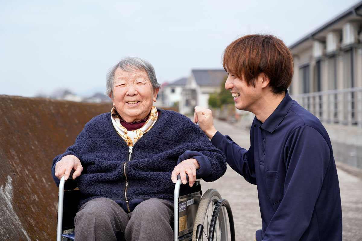 介護職は、介護者の日常生活の介助や身体介護などを行う仕事。専門学校を卒業したからといって、すぐに即戦力とはいきません。思うようにできない悩みや不安だらけです。そんな思いを払拭してくれたのは、先輩・上司の指導力。介護ボランティアで参加した時の印象と変わらず、熱意と愛情を持って育ててもらったと感じています。相談や質問をしやすい環境が整っており、遠慮せずに何でも話せる関係性は業務を進める上でも大切。そうして築いたチームワークの良さは、利用者のみなさんにも必ず伝わっていると思います。