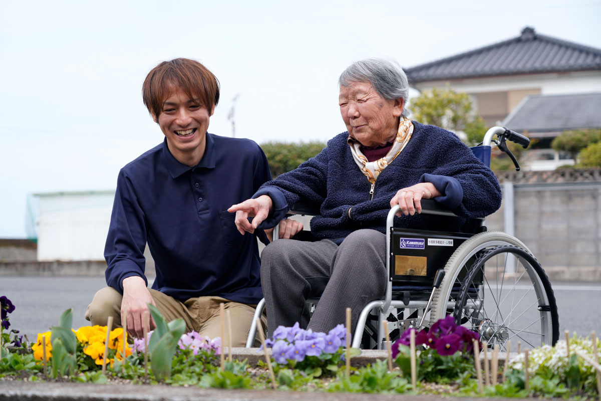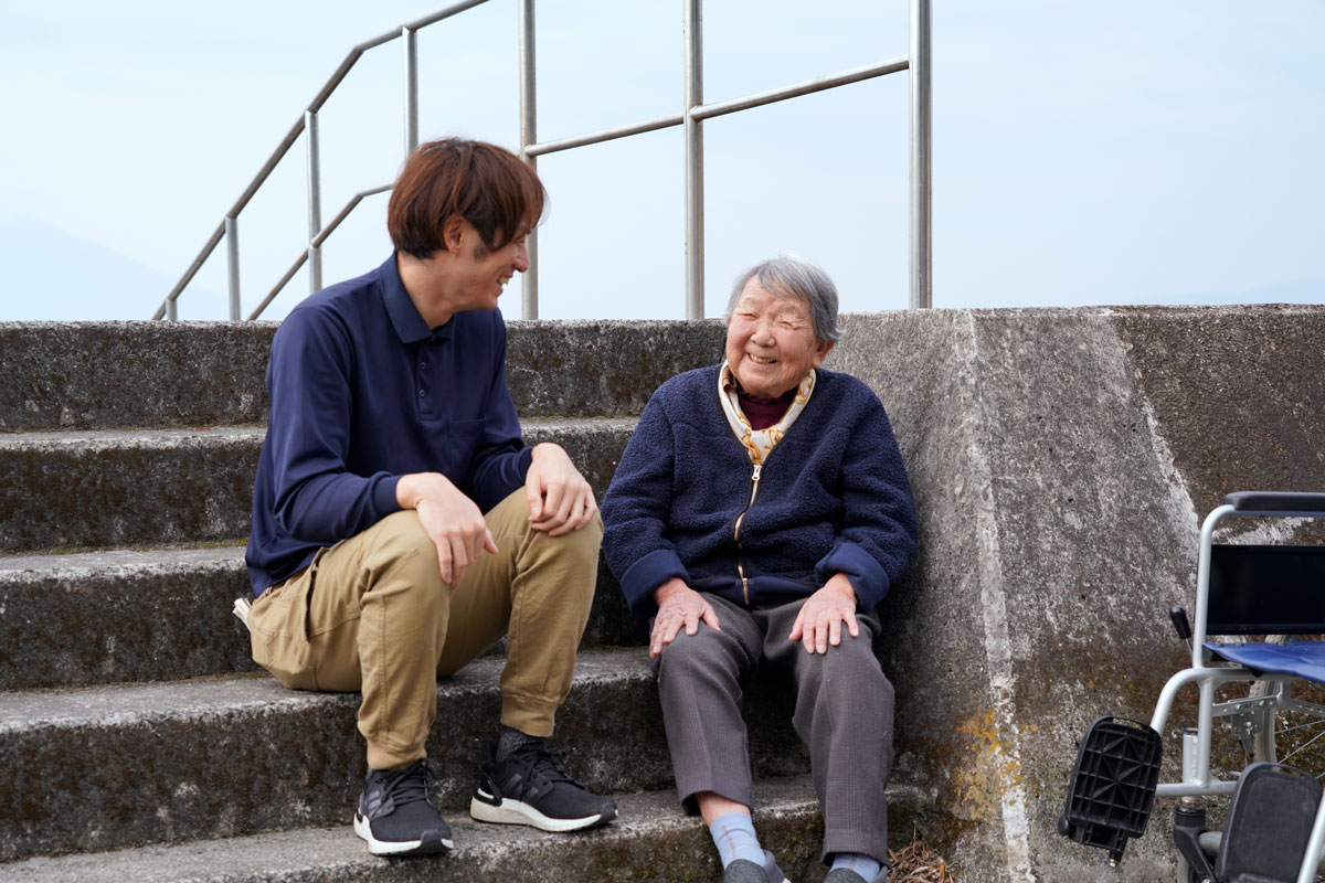 入職からずっと嘉祥園でしたが、もっと広い経験と学びを得たいと希望し、2022年春から『敷根』へ。ここは通所・宿泊・訪問のサービスを行う拠点の他、公民館のような集会所があります。利用者の方やご家族だけでなく、地域に暮らす人にも活用してもらうための施設なんです。政典会には多様な施設があるので、介護職にしても多くの経験を積める機会があります。これからの課題は培ってきた介護知識と技術を、サービスや地域にどう活かすか。施設に訪れた人、関わる人に笑顔と安心を届けられるよう、私らしく頑張りたいですね。